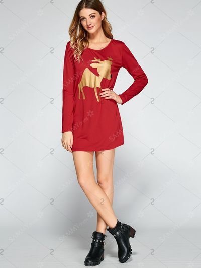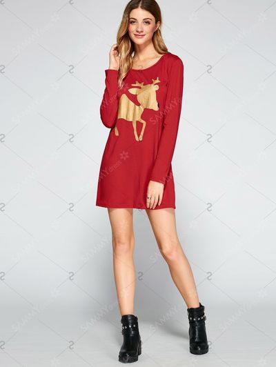Reindeer Pattern Glitter Christmas Dress222